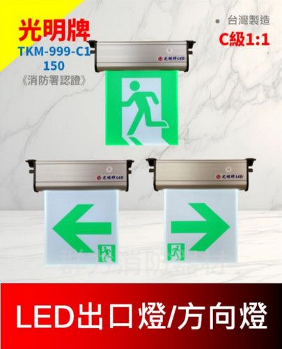 ☼群力消防器材☼ 光明牌 鋁合金LED緊急出口燈方向燈 | C級1:1小型 | TKM-999-150 | 消防署認證