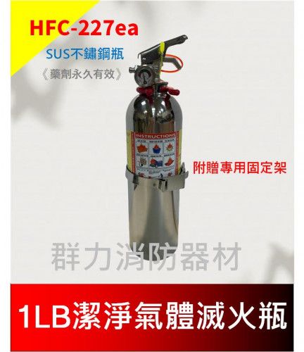 ☼群力消防器材☼ 1LB白鐵氣體滅火瓶-附車架 | HFC-227ea 潔淨氣體滅火瓶 免換藥 輕巧美觀 可放車上使用