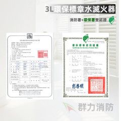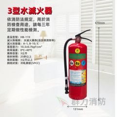 ☼群力消防器材☼ (免運費) 環保標章3L水滅火器 | HB-119 贈專用掛勾及標示貼紙 | 消防署認證+環保署雙認證