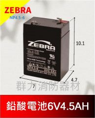 ☼群力消防器材☼ ZEBRA鉛酸電池 | 6V4.5AH | NP 4.5-6 | 照明燈 | 兒童電動車 | 專用電池