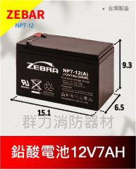 ☼群力消防器材☼ ZEBRA鉛酸電池 | 12V7AH | NP7-12 | 受信總機電池 | 廣播主機專用電池
